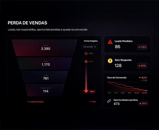 Sim. Você acompanha funil, conversões, gargalos e previsão de receita. Em nossa página de dashboard com relatórios, disponibilizamos um Agente IA especialista em análise de dados sempre disponível para você.